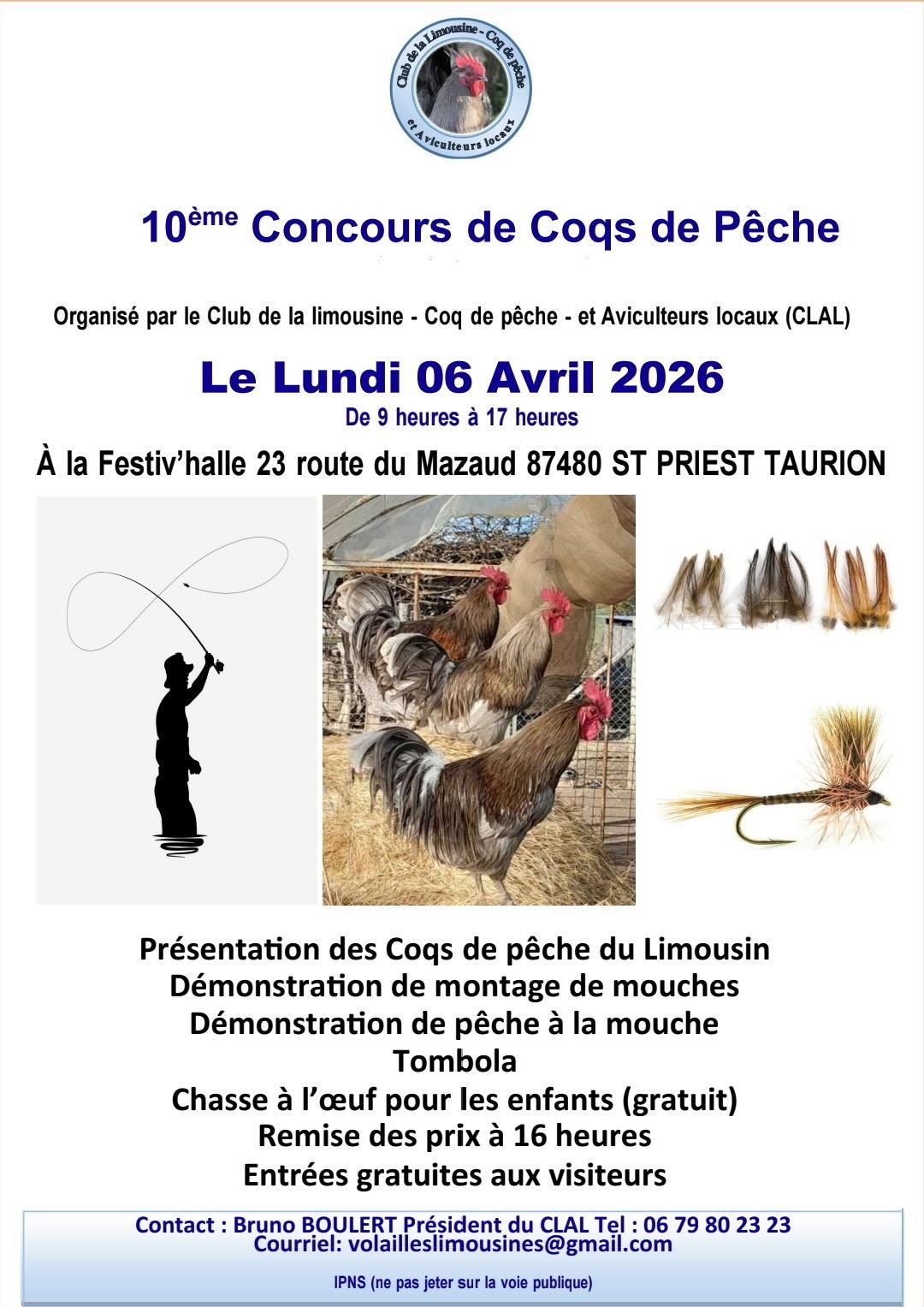 10 ème concours Coqs de pêche du Limousin organisé par le CLAL le lundi 06 avril 2026